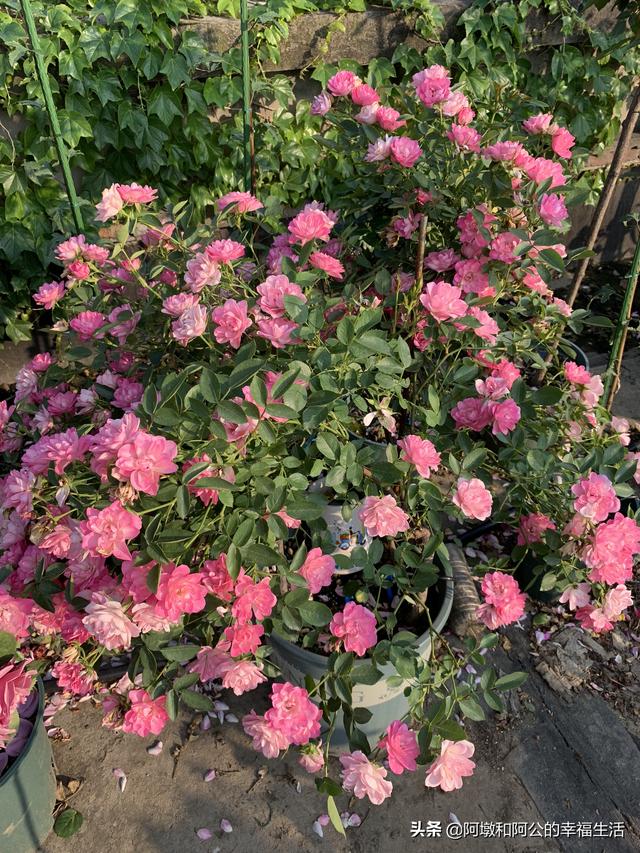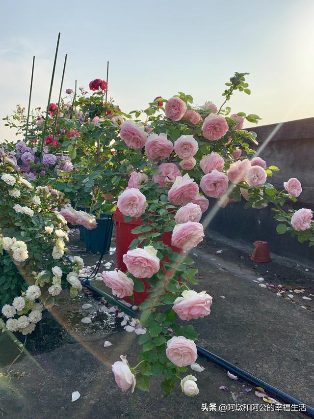 3.藤本月季是现代月季种群中亲缘关系非常庞杂的类型。该类型主要是由一年一度开花和一年多次开花的藤本月季组成。藤本月季花色多彩艳丽,全身开花,花头众多。园林中应用形式多样,可形成花球,花柱,花墙,拱门等景观。主要品种有安吉拉,假面舞会,御用马车,光谱等。