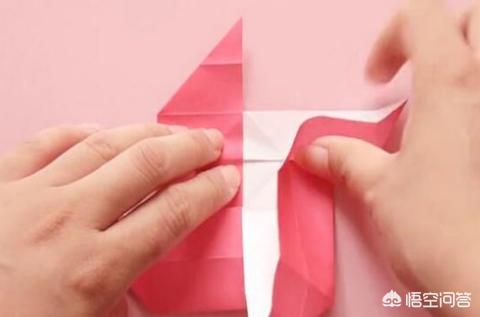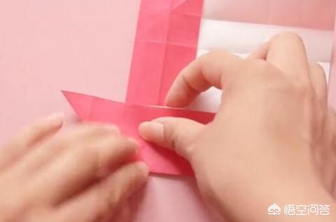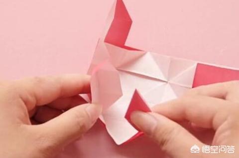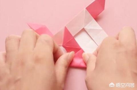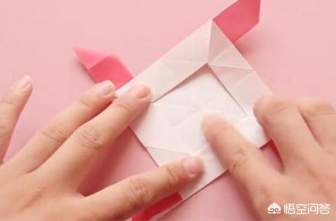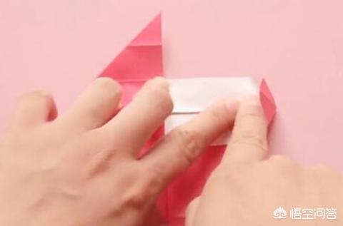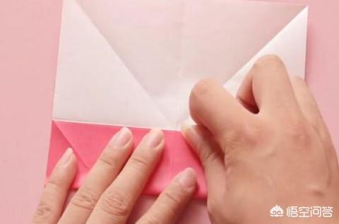 9、下面的一边包住上面的部分,相邻的角沿折痕折叠。