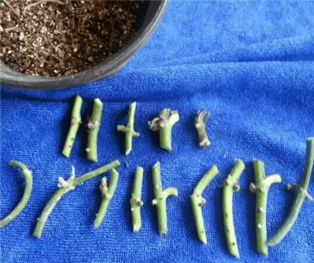 准备一个经过消毒的剪刀,将选好的枝条从母株上剪下来,然后摘除其上的所有叶片,并且剪成2-4cm长度的小条。