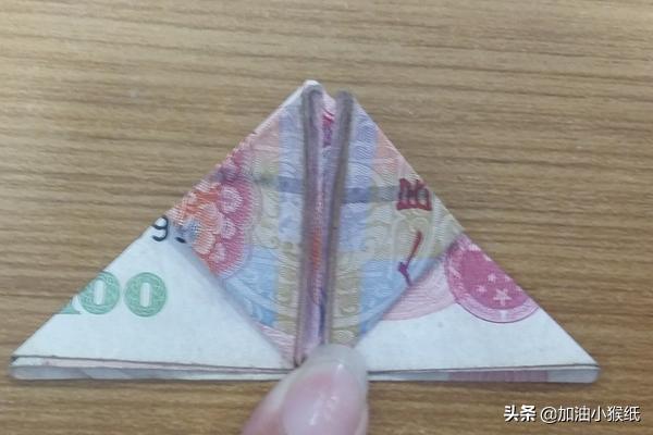 1、取一百元的钱一张,对折成正方形,然后角对角,边对边对折出痕迹,展开;