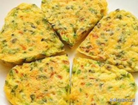 4、煎槐花鸡蛋饼,槐花中加入鸡蛋、面粉、盐、胡椒粉搅拌均匀。不粘锅中加油,倒入搅好的糊,用勺子压平,定型后翻面再煎,至两面金黄便可出锅。