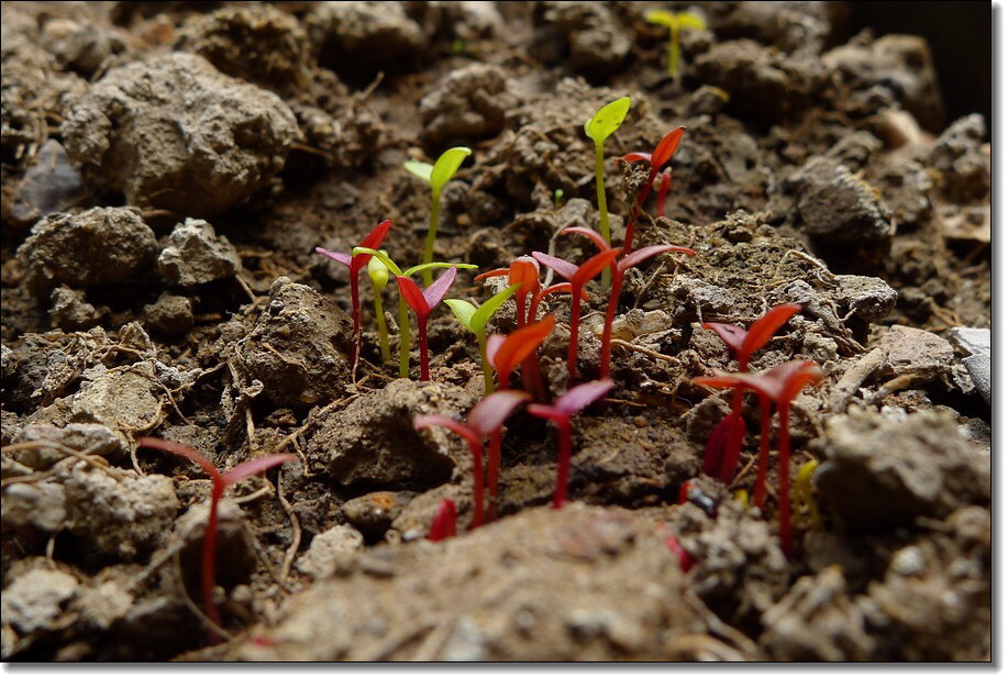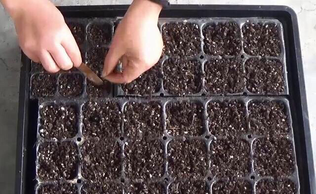 把鸡冠花种子撒进营养钵里,上面盖一层营养土,浇上水催芽。