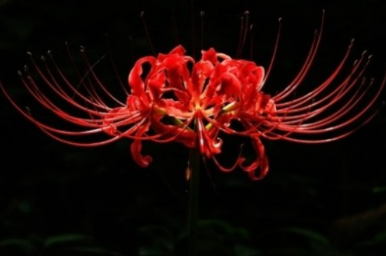 彼岸花日文别名叫做"曼珠沙华",曼珠沙华的美,是妖异、灾难、死亡与分离的不祥之美,触目惊心的赤红,如火、如血。