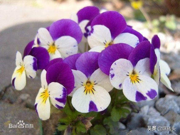 三色堇(学名:Viola tricolor L.)是堇菜目堇菜科堇菜属的二年或多年生草本植物。基生叶叶片长卵形或披针形,具长柄;茎生叶叶片卵形、长圆形或长圆披针形,先端圆或钝,边缘具稀疏的圆齿或钝锯齿。是欧洲常见的野花物种,也常栽培于公园中,是冰岛、波兰的国花。花朵通常每花有紫、白、黄三色,故名三色堇。该物种较耐寒,喜凉爽,开花受光照影响较大。三色菫以露天栽种为宜,无论花坛、庭园、盆栽皆适合,但不适合室内种植。三色堇还可杀菌,治疗皮肤上青春痘、粉刺、过敏问题。