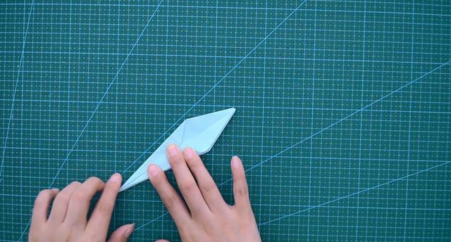 2.将折好的正方形的边分别对折,接着压紧纸张,将下面的纸张向内依次对折。