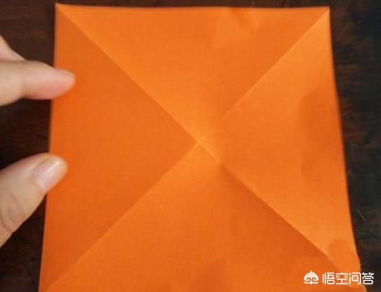 3、再将正方形彩纸沿着中线对折,这样就形成了一个“米”字形折痕。