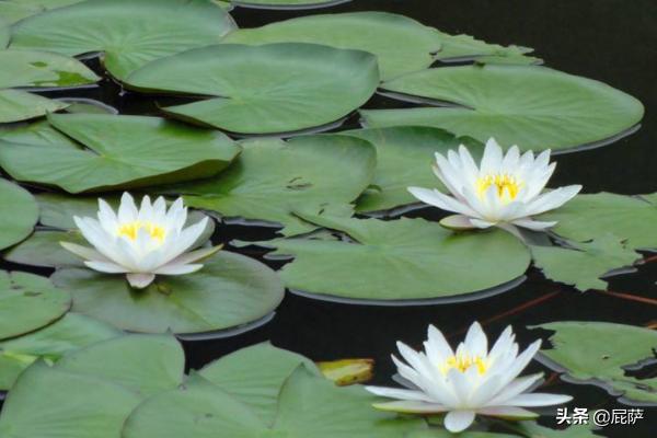 2、浮叶植物:泉生眼子菜、竹叶眼子菜、睡莲、萍蓬草、荇菜、菱角、芡实、王莲等。