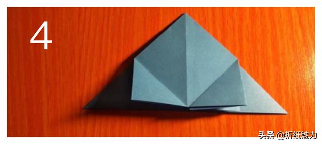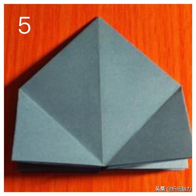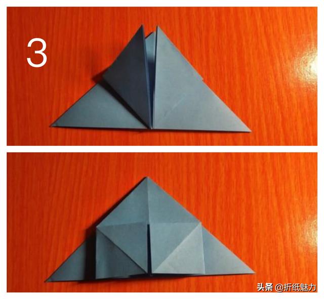 折纸翻面,将双层三角形部分竖立起来,