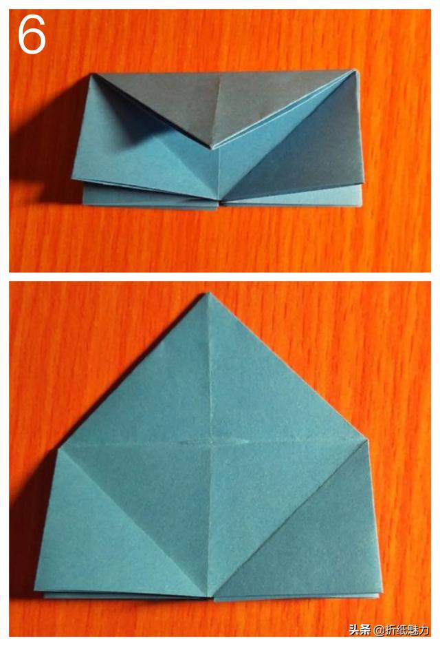 6.折纸上方角下折,压出折痕后展开,