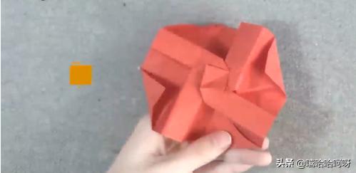 2、然后在折纸正中间的位置,再折出正方形,作为玫瑰花的花心。