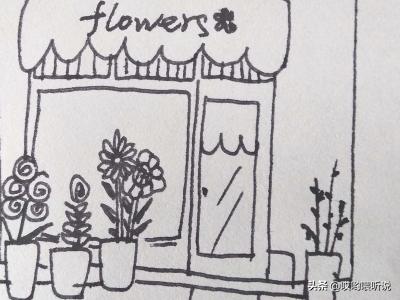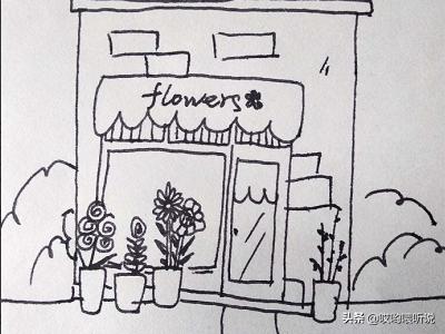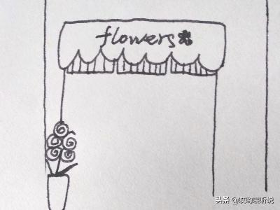 5、然后画出鲜花店的橱窗和门,如下图所示。