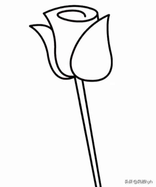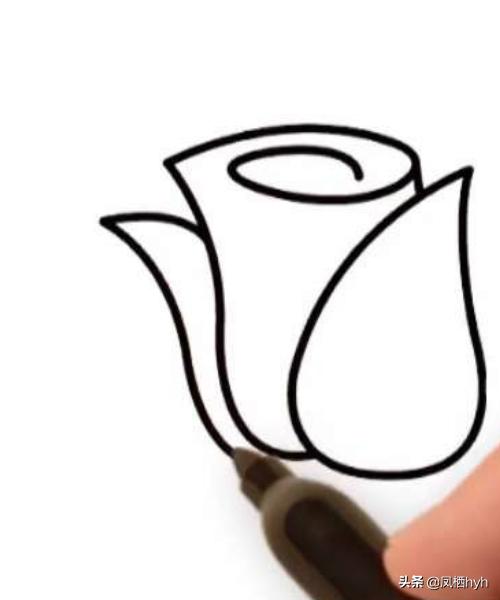 第一步先画出玫瑰花的花瓣,最里面的花瓣紧实而且没有打开,慢慢往外花瓣越来越大,散的更开,画完花瓣后画上花萼、花枝。