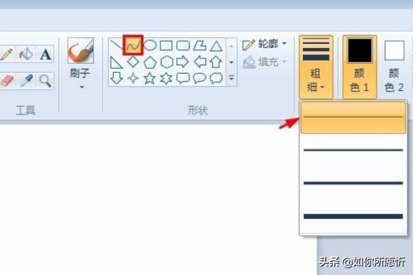 2.在形状框中选择曲线,线条设置为最细。