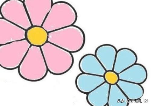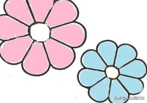 6、给花瓣填上你自己喜欢的颜色哦~比如粉色的花瓣和蓝色的花瓣哦。