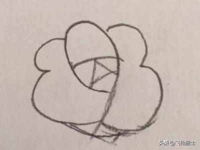 1、先选一支自己喜好的玫瑰花,通过观察先画出大概轮廓(也叫辅助线),用直线体现就好,不过新手们画的时候别太用力,轻轻的直线就好。可以不用画的全部一样,但形态要差不多。