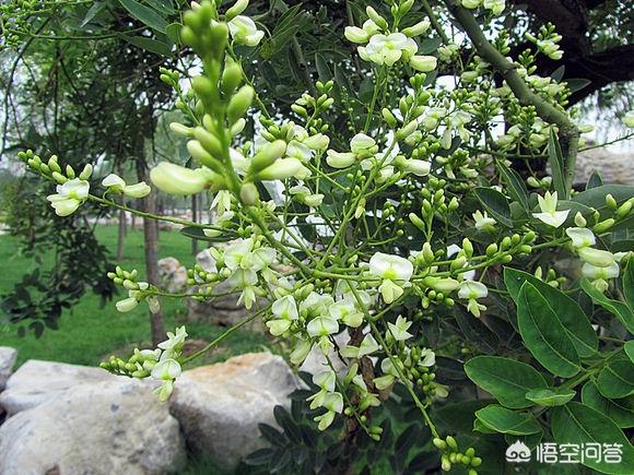 洋槐叶凹,小枝非绿色,树干裂深,花序腋生,荚果非念珠状