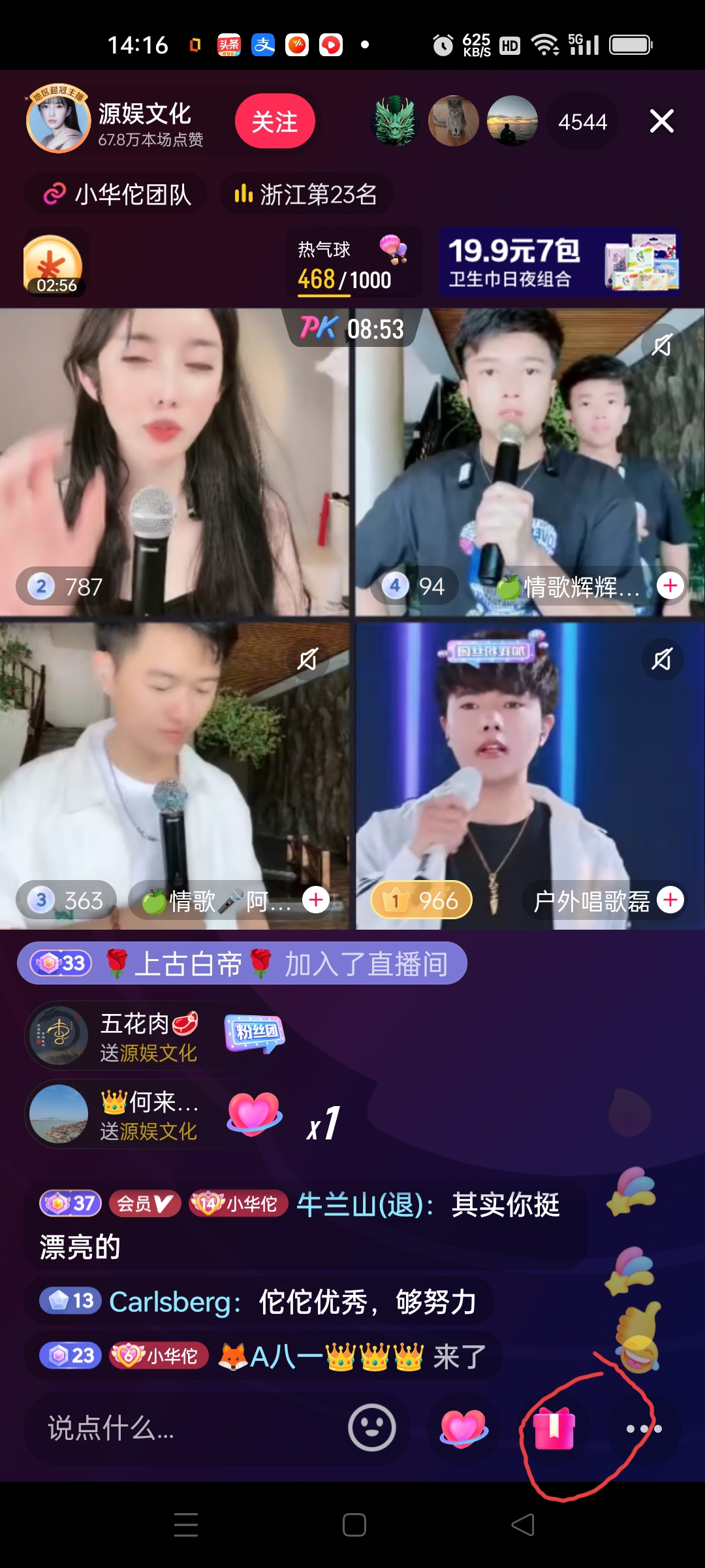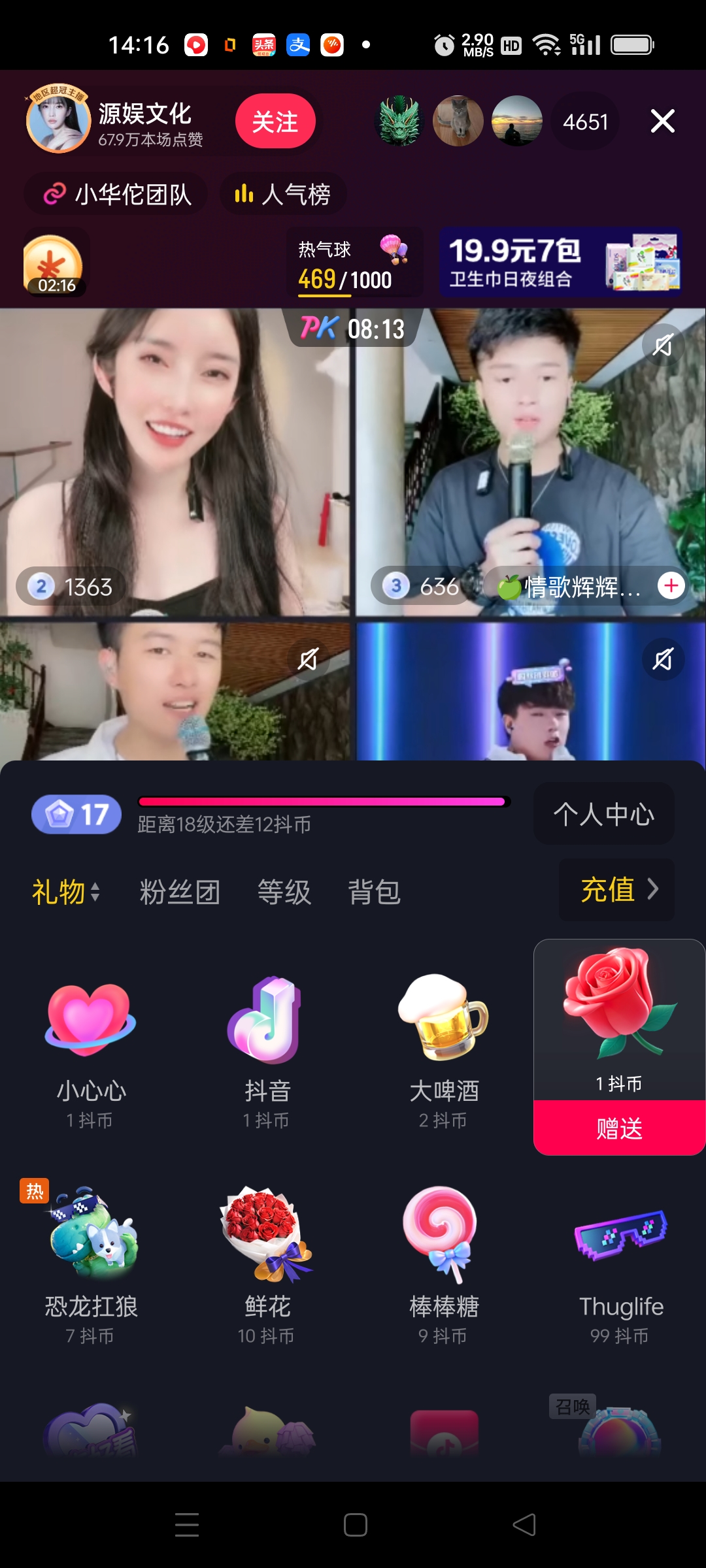 在抖音首页,任意选择一个直播间进入,会出现一个直播面面