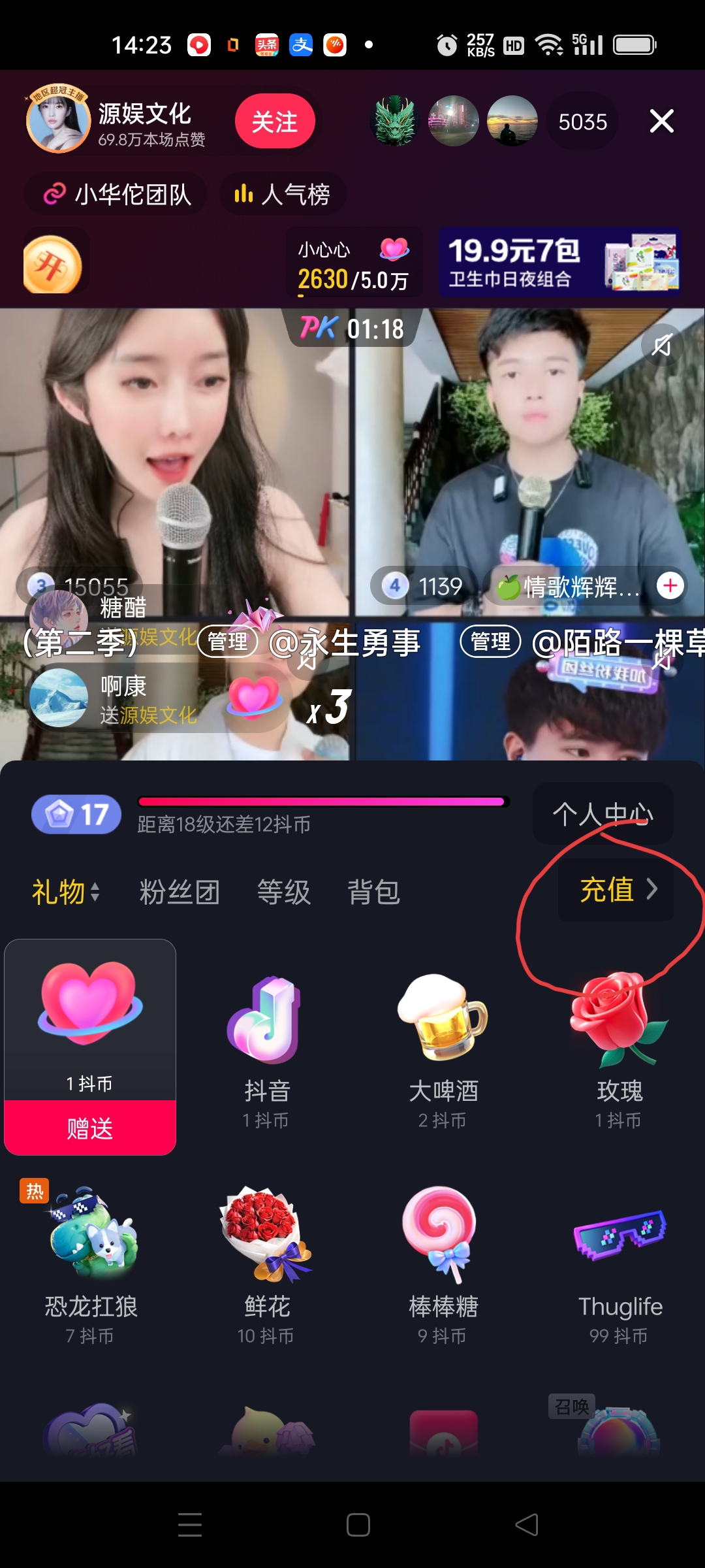 点击上图右下角粉色礼物图标,出现了玫瑰花,点击即可送上小花花,送一个小花花需要一抖币。