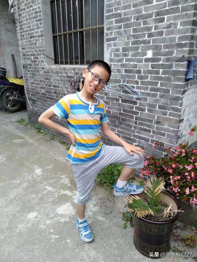 这张照,片拍于放暑假时,在他外婆家。喜欢臭美的,拍个照,都要酷酷的。