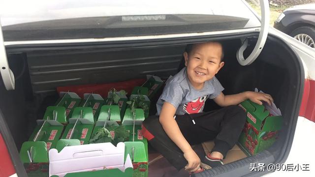 无忧无虑笑的很暖心,看得出他不只喜欢樱桃还很喜欢舅舅车的后备箱