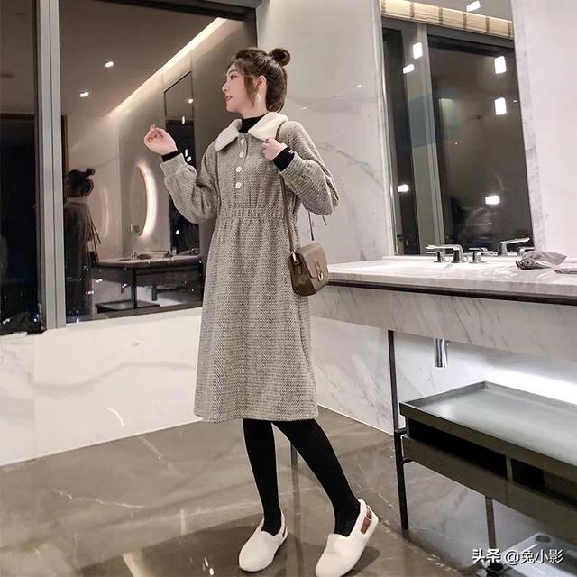 敲韩的淑女呢子连衣裙,温柔优雅,单穿也很温暖,秋冬天也要美美哒!拼接仿貂绒翻领,烘托出纤细的颈部,而且毛绒绒的质感,增添整体的厚实感,很有冬天的味道呐!高腰设计结合A字裙摆,不经意间拉长腿部比例敲显腿长,当然遮肉力也是满昏呐,穿上很显瘦哦~白色圆形纽扣点缀,丰富细节感还方便穿脱~中长的长度设计柔和气质,为优雅加分,还不会压个呐!