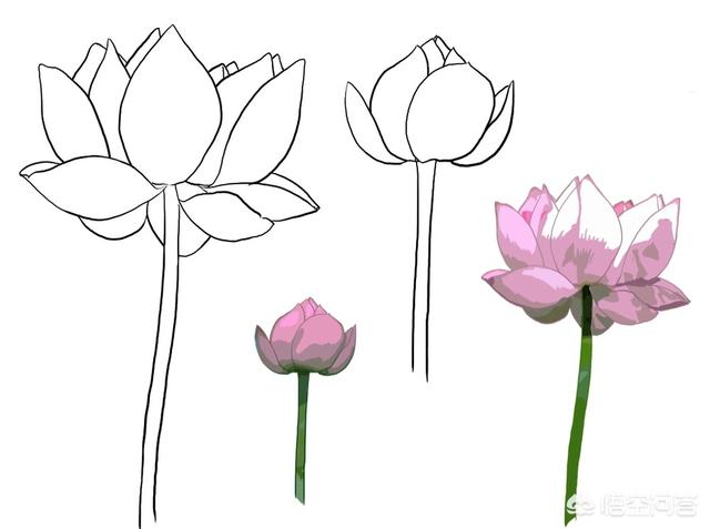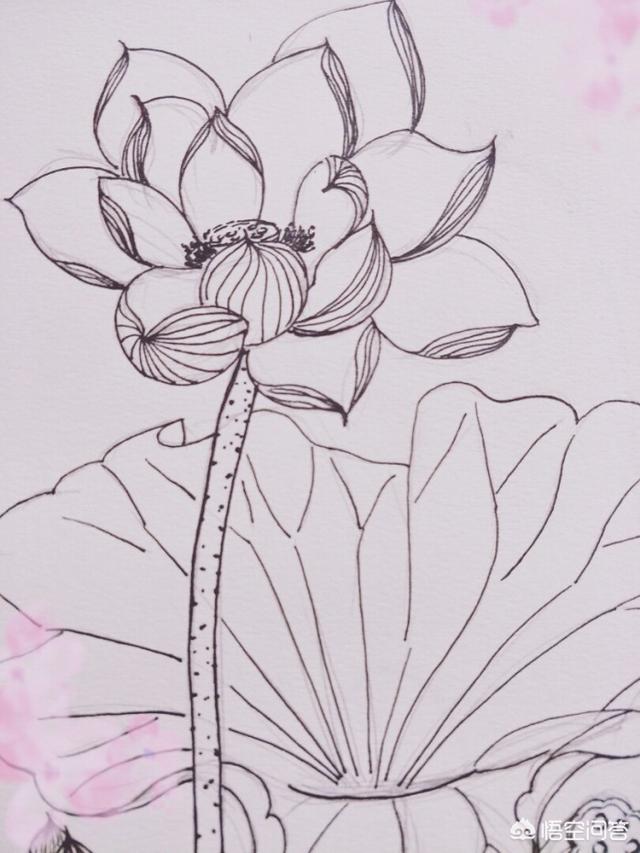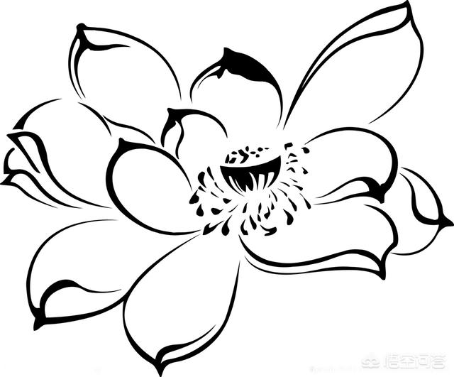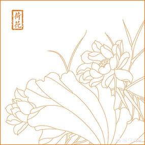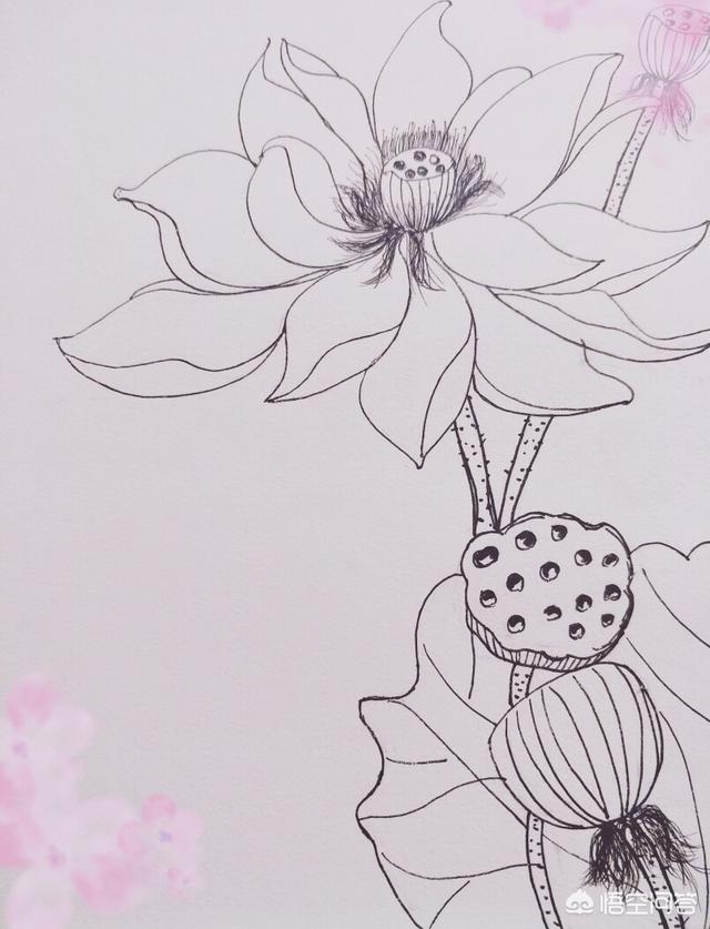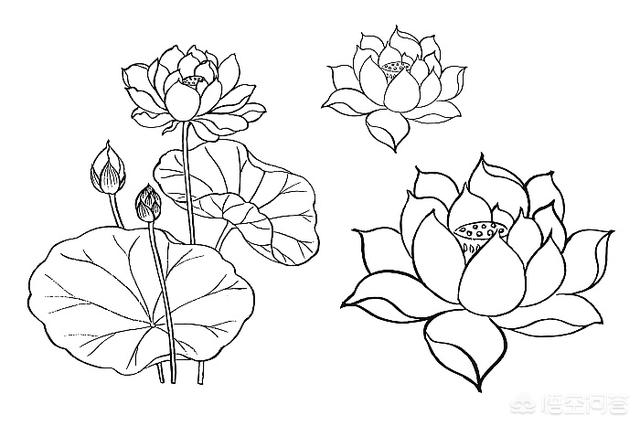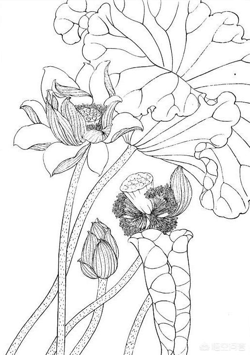 分享收藏的一组线描荷花图,可以用来刺绣。