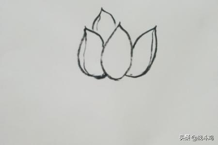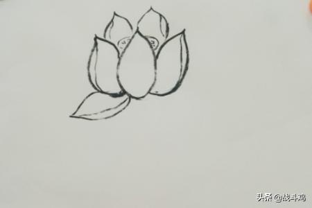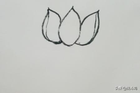 4、然后再在第一个的左边画第三个花瓣。
