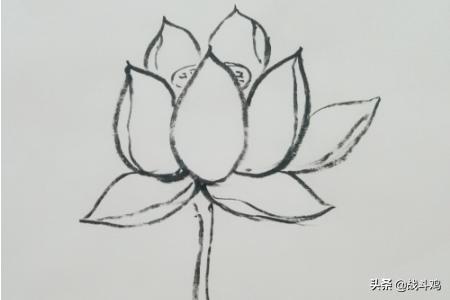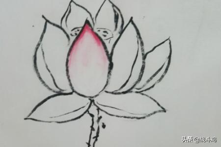 3、第三笔是在第二个花瓣上加上一笔,用笔小从小花瓣的顶部画下来,不用画到底,是为了增加画的层次感。