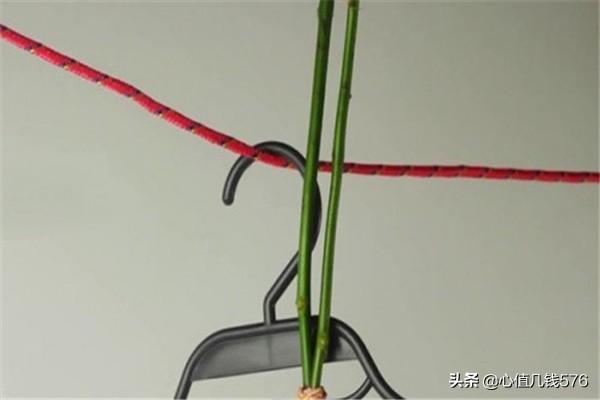 2、把玫瑰挂在室内不太用的晾衣绳上(可以挂在洗衣房、储物室里等等)。