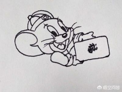 3、接着画出jerry小老鼠的一只手和手里拿的红包