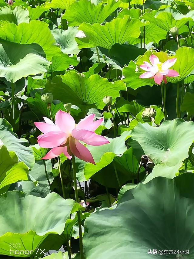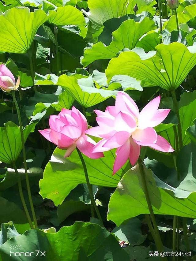 清晨和黄昏时荷花是最美的,这个时候光线柔和,阳光有色彩,照在荷塘里,浅光淡影,观赏性最强。